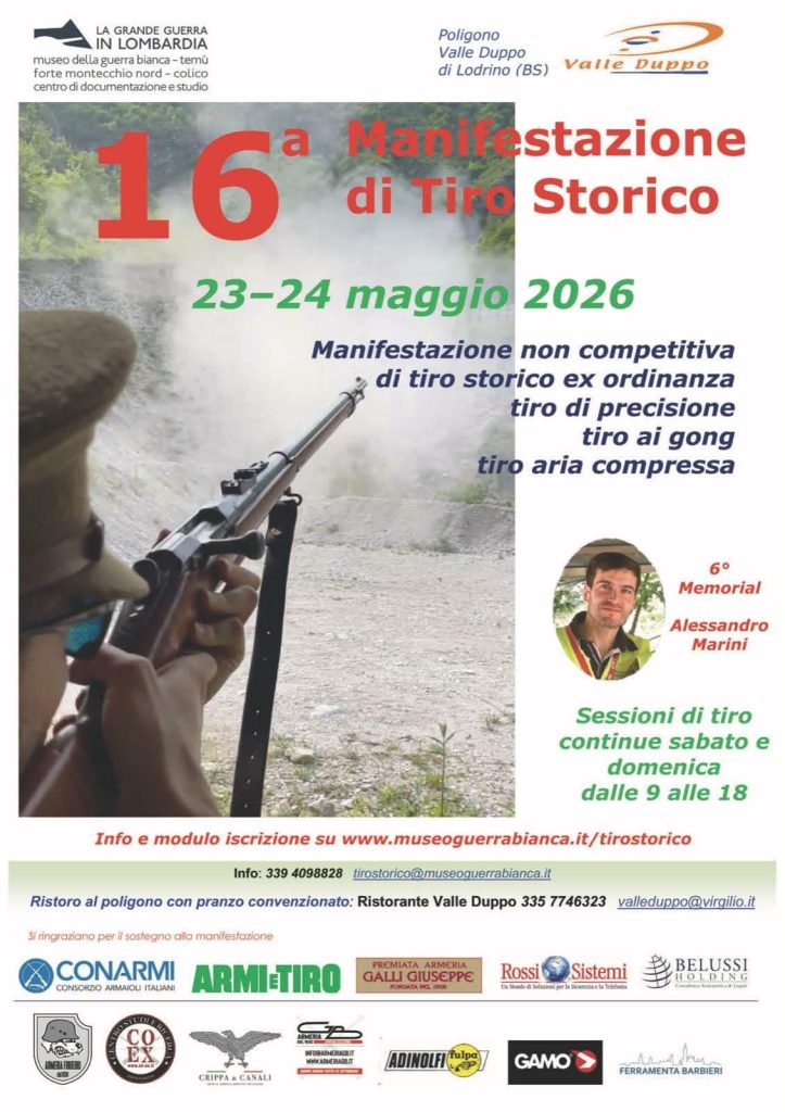Un appuntamento imperdibile per gli appassionati di tiro con l’ex ordinanza, ma anche per i collezionisti che hanno il desiderio di ritrovarsi e confrontare i propri cimeli. Stiamo parlando della manifestazione di Tiro storico, giunta ormai alla sedicesima edizione, che si svolgerà come di consueto al campo di tiro Valle Duppo di Lodrino (Bs) il 23 e 24 maggio 2026.
