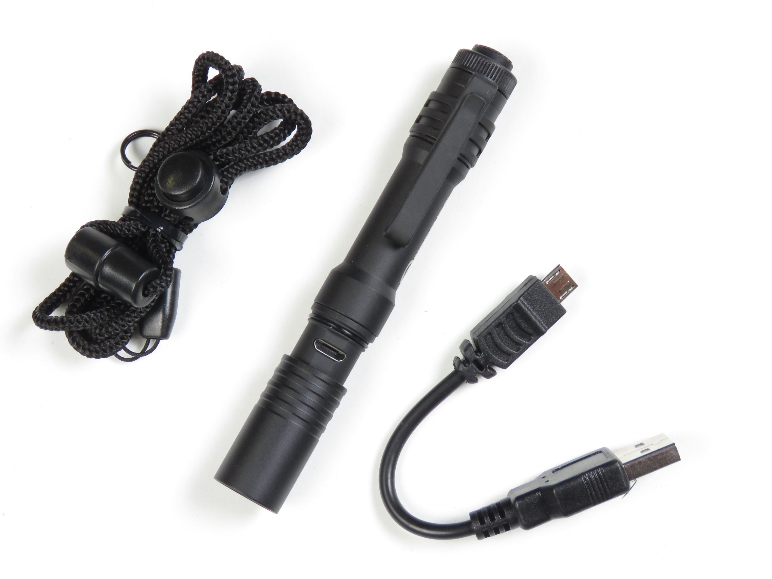 La dotazione comprende sia il cavetto Usb di ricarica, sia un laccio regolabile in Cordura per sospenderla al collo o al polso.