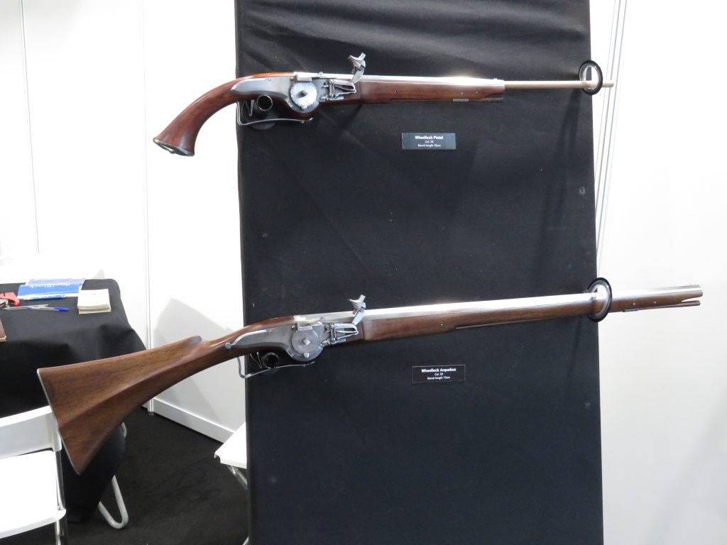 Nella storia dell’evoluzione delle armi da fuoco, le armi con acciarino a ruota rappresentano il punto di congiunzione tra le prime, rudimentali forme di accensione a miccia e le successive armi con acciarino a pietra focaia. Mentre sia le prime, sia le seconde vantano innumerevoli ricostruzioni moderne di tipo industriale (cioè riprodotte in serie), fino a questo momento le armi con acciarino a ruota erano state riprodotte solo a livello artigianale, ma la loro complessità non aveva trovato uno sbocco che consentisse una riproducibilità in serie. Per l’appunto, fino a questo momento: a Iwa infatti la Lazzarino historical arms di Marcheno (Bs) ha presentato i primi prototipi di repliche a ruota. Si tratta di un fucile calibro 20 con canna lunga 730 mm, e di una pistola da cavalleria calibro 28, con canna lunga 350 mm. Al di là dell’ottima qualità delle finiture, il meccanismo consente una affidabile accensione e, quindi, una possibilità reale di tiro. I calci possono essere realizzati con legno di noce o di ciliegio, il design riprende fedelmente originali di scuola germanica del XVII secolo. Il prezzo al pubblico è di 1.800 euro per la pistola e 2.200 euro per il fucile.