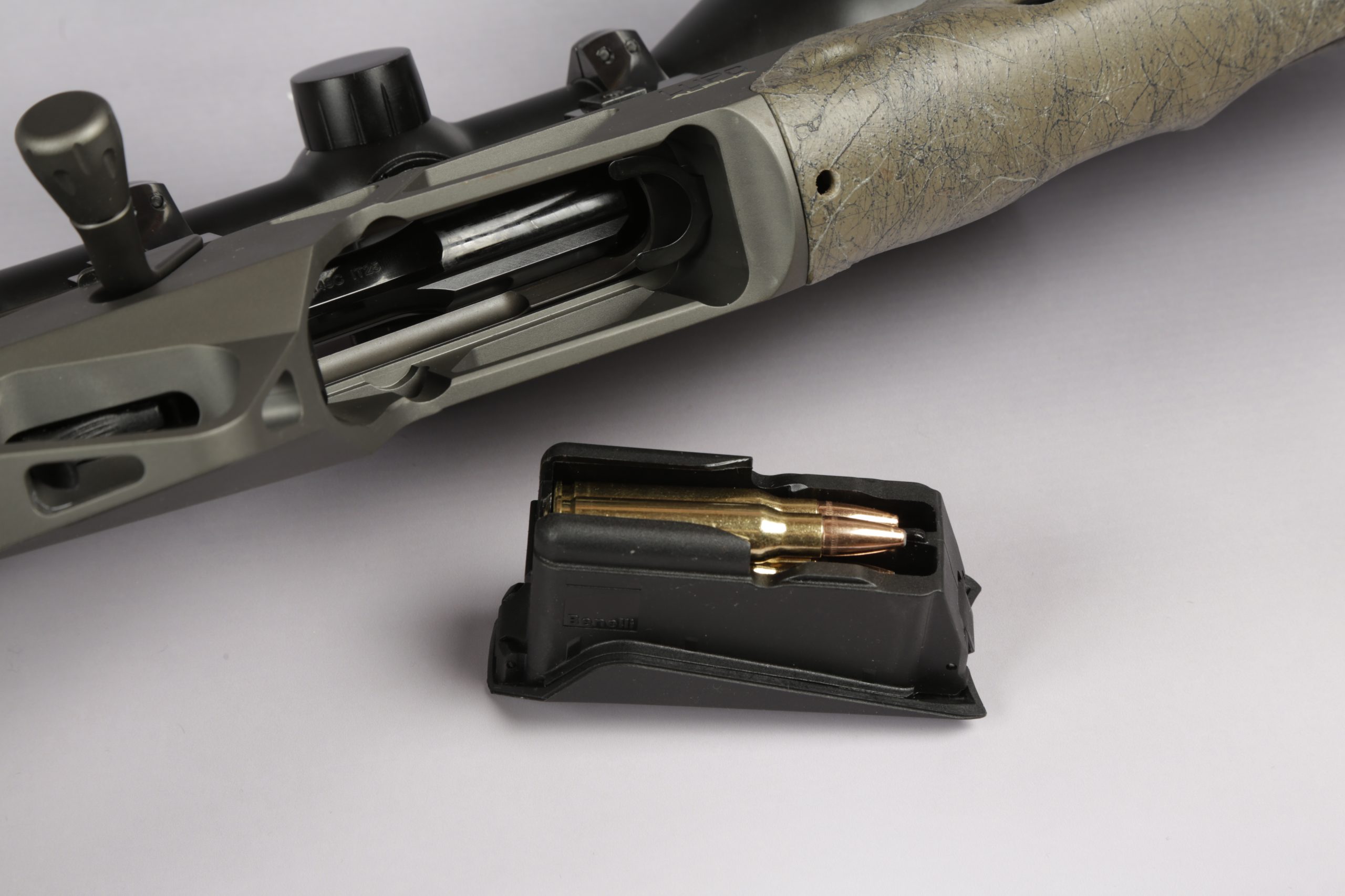 Al fine di ridurre il peso complessivo, sono stati eseguiti alcuni particolari interventi anche sullo chassis in lega leggera e sull’azione in acciaio. Lo chassis presenta delle fresature geometriche su entrambi i fianchi, che creano dei fori passanti, riempiti dal caricatore polimerico. È presente una fresatura anche in corrispondenza del ponticello, mentre l’azione è caratterizzata da scanalature di alleggerimento e dalla presenza di una finestratura su entrambi i lati. Sopra l’azione è presente di serie una slitta Picatinny per il montaggio del cannocchiale di puntamento.