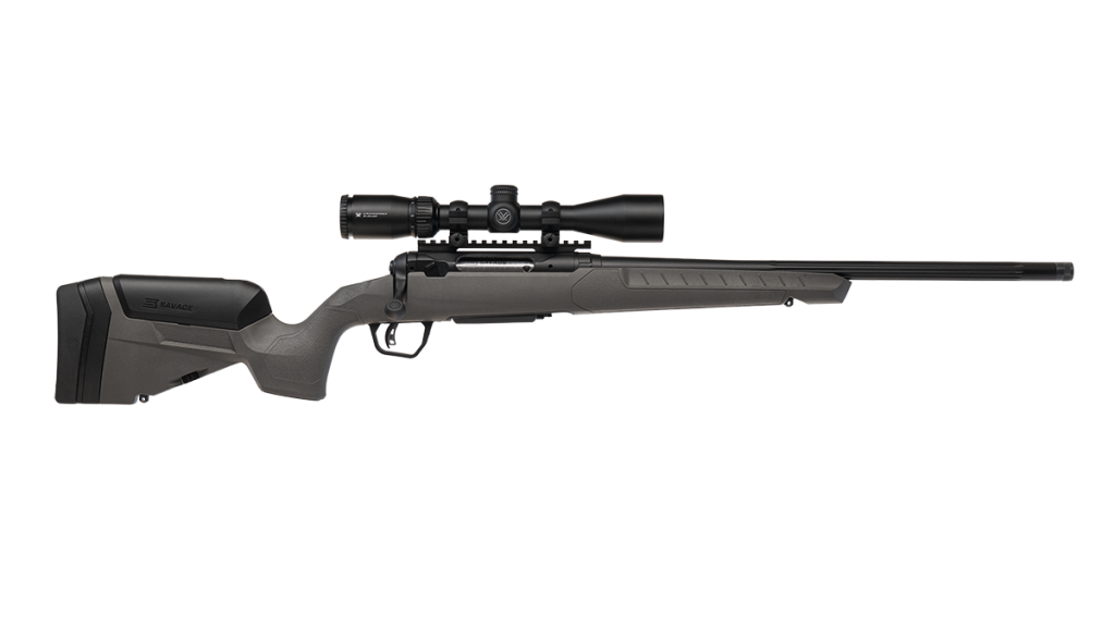 Il modello 110 Trail blazer (foto sopra) è caratterizzato da calciatura in polimero Flat dark gray, canna a profilo “Heavy sporter” fluted con lunghezza compresa tra 16,5 e 20 pollici a seconda del calibro, finitura di canna e azione Black ink Cerakote, slitta Picatinny inclinata di 0 Moa.