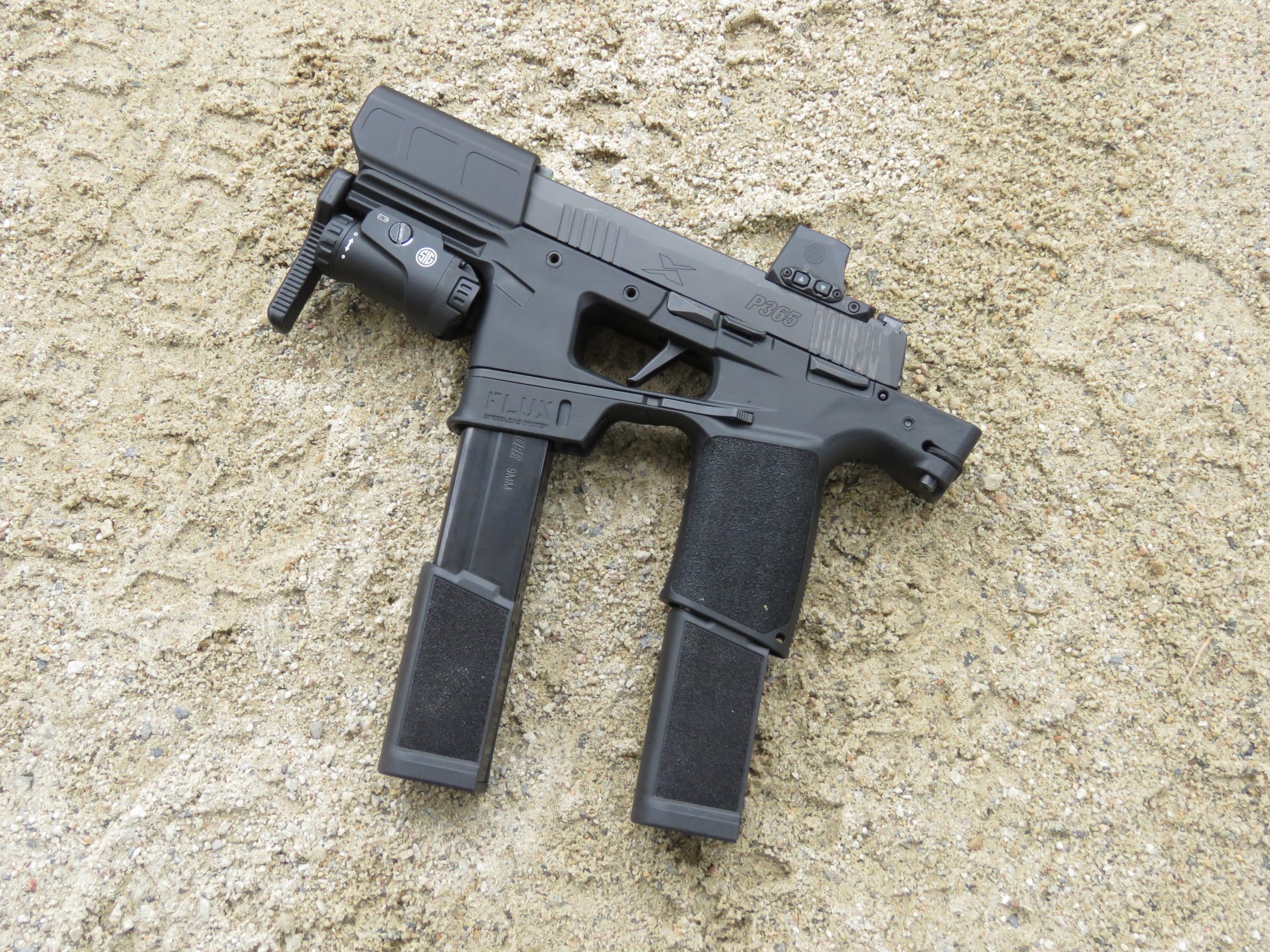 Prosegue la collaborazione tra Sig Sauer e Flux defense: dopo la P320, adesso anche per la P365 è stato creato uno chassis tattico che trasforma l’arma in una Pdw. Considerando le dimensioni della P365, si tratta della Pdw oggettivamente più piccola del mondo in 9×19. Al carrello classico P365 è abbinata una canna match lunga 6 pollici, l’insieme è accolto da uno chassis polimerico con calcio a stampella ripiegabile. Il rest anteriore per l’appoggio della mano debole è in realtà un alloggio per un caricatore di ricambio, premendo il ritegno di questo caricatore si sgancia automaticamente anche quello principale, agevolando il cambio in velocità. Intorno alla volata è previsto un manicotto che consente l’appoggio del pollice della mano debole senza interferenze con la volata. La lunghezza complessiva è di 485 mm con calcio esteso, i caricatori sono da 17, 21 o 25 cartucce. Per la collimazione, mire al trizio oppure micro dot.