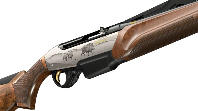Dal punto di vista estetico, la Endurance BE.S.T. De luxe vanta una carcassa in Ergal che si distingue per un lavoro di incisione laser che disegna due paesaggi differenti. Sul lato destro, si stagliano tre cinghiali che attraversano un suggestivo paesaggio collinare, mentre sul lato sinistro sono raffigurati alcuni caprioli. Il logo del prodotto risalta con maggiore intensità grazie all’oro, che ne accresce la visibilità. La carcassa è dotata anche di un fodero, in lega leggera con finitura nera lucida, che presenta una serie di fori filettati nella parte superiore, per consentire il montaggio di una slitta Picatinny per l’installazione di un punto rosso o di un cannocchiale da battuta.