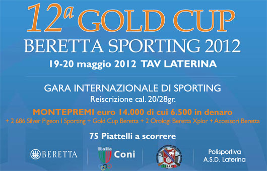 Sabato 19 e domenica 20 maggio, la Tav Laterina (Ar) ospiterà la XII Gold cup Beretta Sporting 2012, su 75 piattelli a scorrere
