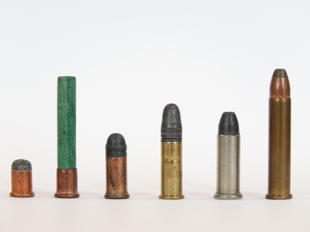 Da sinistra: 6 mm Flobert a palla e a pallini, .22 short, .22 long rifle, .22 Winchester automatic, .22 magnum.