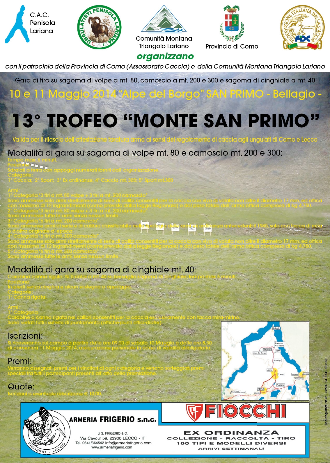 Il 10 e 11 maggio, all’Alpe del borgo di San Primo, sopra Bellagio (Lc), si svolgerà il XIII Trofeo Monte San Primo, valido anche per il rilascio dell’attestazione di taratura arma per la caccia agli ungulati di Como e Lecco.