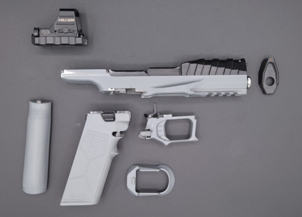 La statunitense Rideout arsenal Dragon è una pistola semiautomatica che ha fatto il proprio debutto ufficiale all’edizione 2026 di Shot show: destinata al tiro action, vuole stabilire un nuovo primato in termini di distanza contenuta tra l’asse della canna e l’asse della mano del tiratore. Tanto contenuta questa distanza da essere addirittura negativa, -1,3 millimetri! La progettazione è completamente originale, non deriva cioè da alcun altro progetto. Il telaio è in Ergal ed è realizzato con concezione modulare: il telaio vero e proprio contiene la canna, che è fissa, e su di esso si agganciano il ponticello del grilletto con gruppo scatto integrale, e l’impugnatura. L’arma ha canna lunga 5 pollici e utilizza caricatori da 17 o 20 colpi 9×19 della Springfield Echelon.