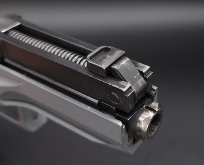 Il sistema di chiusura è di tipo metastabile (delayed blowback), il carrello è dotato di una leva che moltiplica la resistenza all’apertura, determinando un ritardo che consente l’abbassamento delle pressioni in camera a livello di sicurezza.
